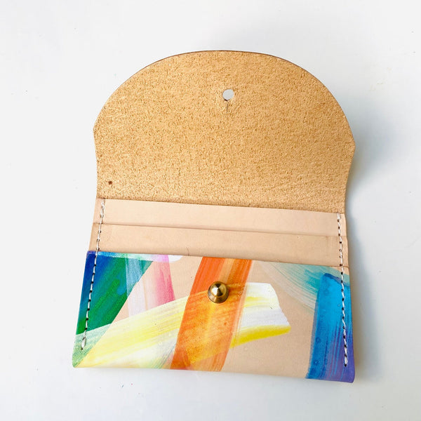Each of these leather purses is lovingly handmade and hand painted by me. Every one is a unique expression of colour — no two are ever the same — making it not just a purse, but a little piece of artwork you can carry with you.