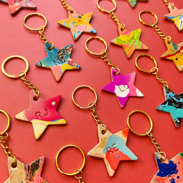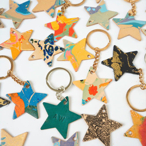 These beautiful star keyrings are hand marbled so no two will ever be the same, they can also be personalised making it a truly unique gift for a loved one, or yourself! Great gift for a little person or a big one! Please note these star keyrings are available in a variety of colours which will be picked at random from the colour option you select. If you would like a specific marbled keyring please do get in contact.