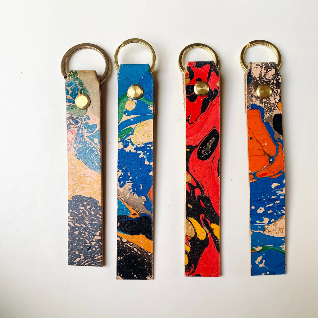 SECONDS Handmade Leather Marbled Keyring - Personalised