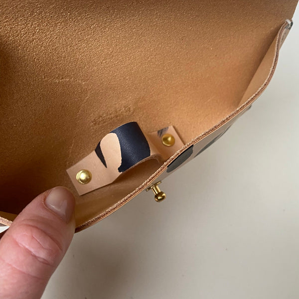 All items across the range are made with high quality Italian leather. This particular leather is firm and has a smooth texture.  All products are designed and handmade by myself with great care taken at each stage to produce the perfect timeless piece which will wear beautifully over time.