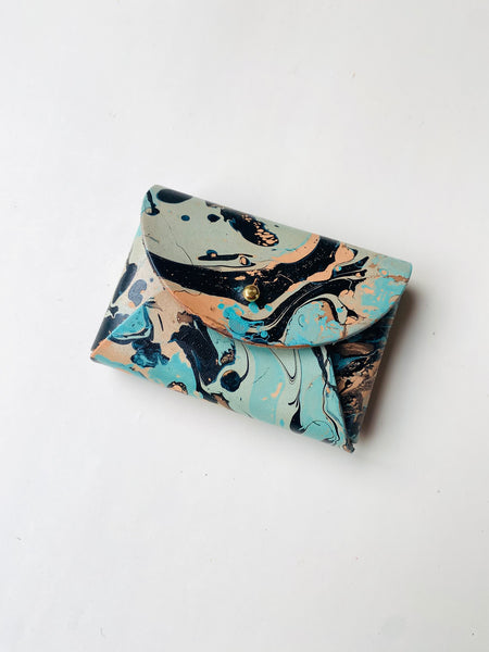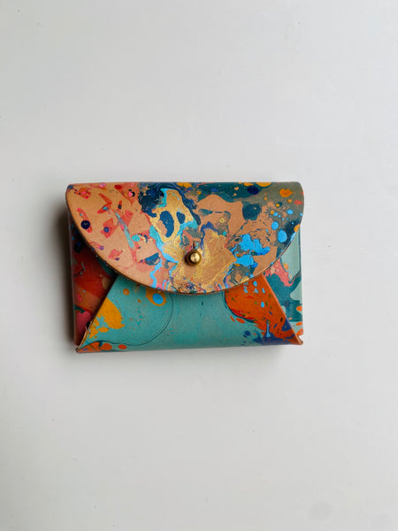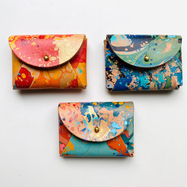 Each piece is hand marbled and made by myself with great care taken at each stage to produce the perfect timeless piece. My products are also made with vegetable tanned leather so will wear beautifully with age. This particular leather is a firmer type of leather and has a smooth finish.