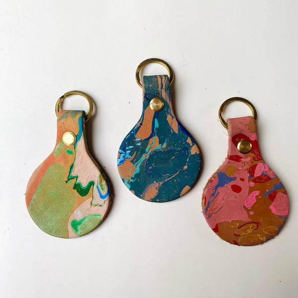 SECONDS - Handmade Leather Marbled Keyring - Personalisation Available