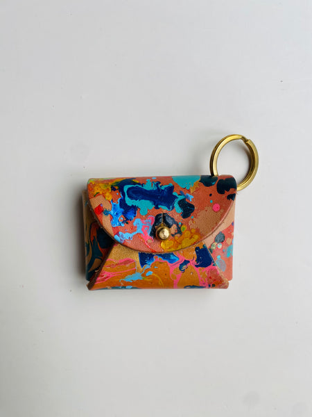 Cute mini purse keyring are hand marbled so no two will ever be the same - Great for keeping loose change, jewellery, earbuds etc makes for a handy addition to your keyring.