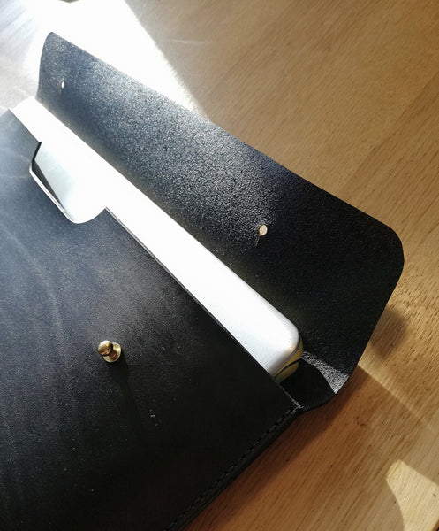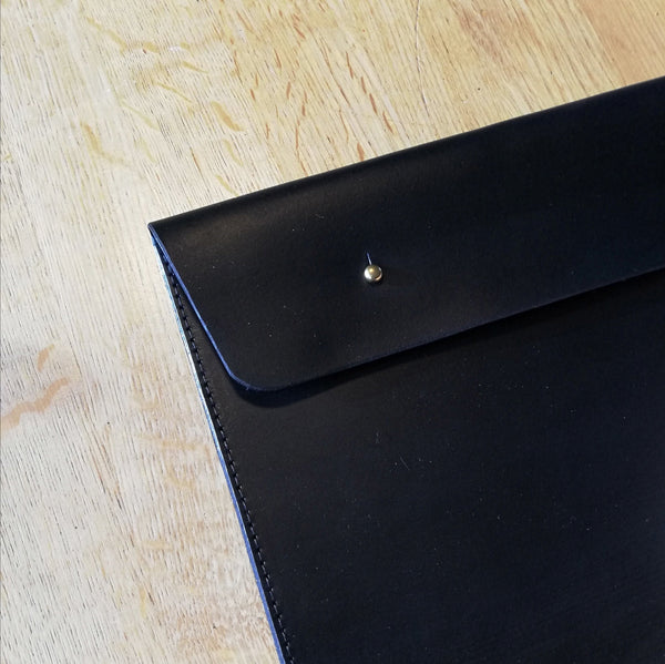 This document holder / lap top case is perfect for carrying A4 documents it's even big enough to carry a tablet too. Holds more than 100 sheets made with high quality leather hides. The case components are solid brass and this item is hand dyed. All items are hand cut and burnished with great attention to detail.